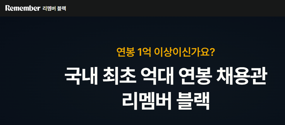 여기서 연봉 1억이란, 기본연봉을 말하는 건 아니고, 전년도 국세청의 근로소득 총액(원천징수 기준)이 1억 원 이상인 경우를 말하는 것이며, 리멤버 블랙 페이지에 게시가 가능한 채용 공고 또한 인센티브를 포함한 총 보상이 1억 원 이상을 뜻한다고 합니다.